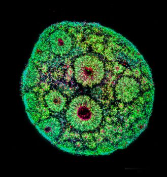 Image: Human cortical brain organoids at 50 days of differentiation displaying the typical rosette-like structures characteristic of the developing human brain. Credits: Aurelio Ortale, Oliviero Leonardi (Testa Group, HT).
